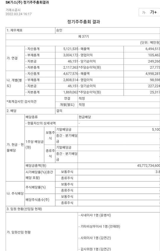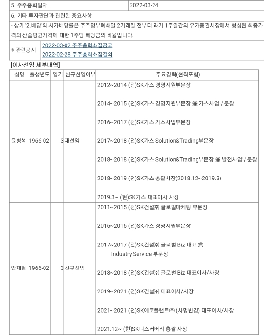 한편 SK가스는 이날 주주총회에서 안재현 SK디스커버리 총괄 사장을 기타비상무이사로 신규 선임했다.