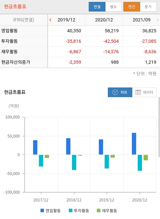 2021년 9월 전년동기 대비 연결기준 매출액은 5.7% 증가, 영업이익은 16.5% 증가, 당기순이익은 88.4% 증가. 주력인 무선통신부문의 실적 확대와 함께 무선통신 및 커머스 등의 선전으로 영업수익 확대됨. 원가율 또한 개선되며 영업수익성 또한 비교적 큰 폭으로 증가한 모습. 실적 개선을 위해 5G 통신망 구축을 주도하고 빅데이터, AI를 접목한 서비스를 선보이는 등 다방면으로 노력 중임.